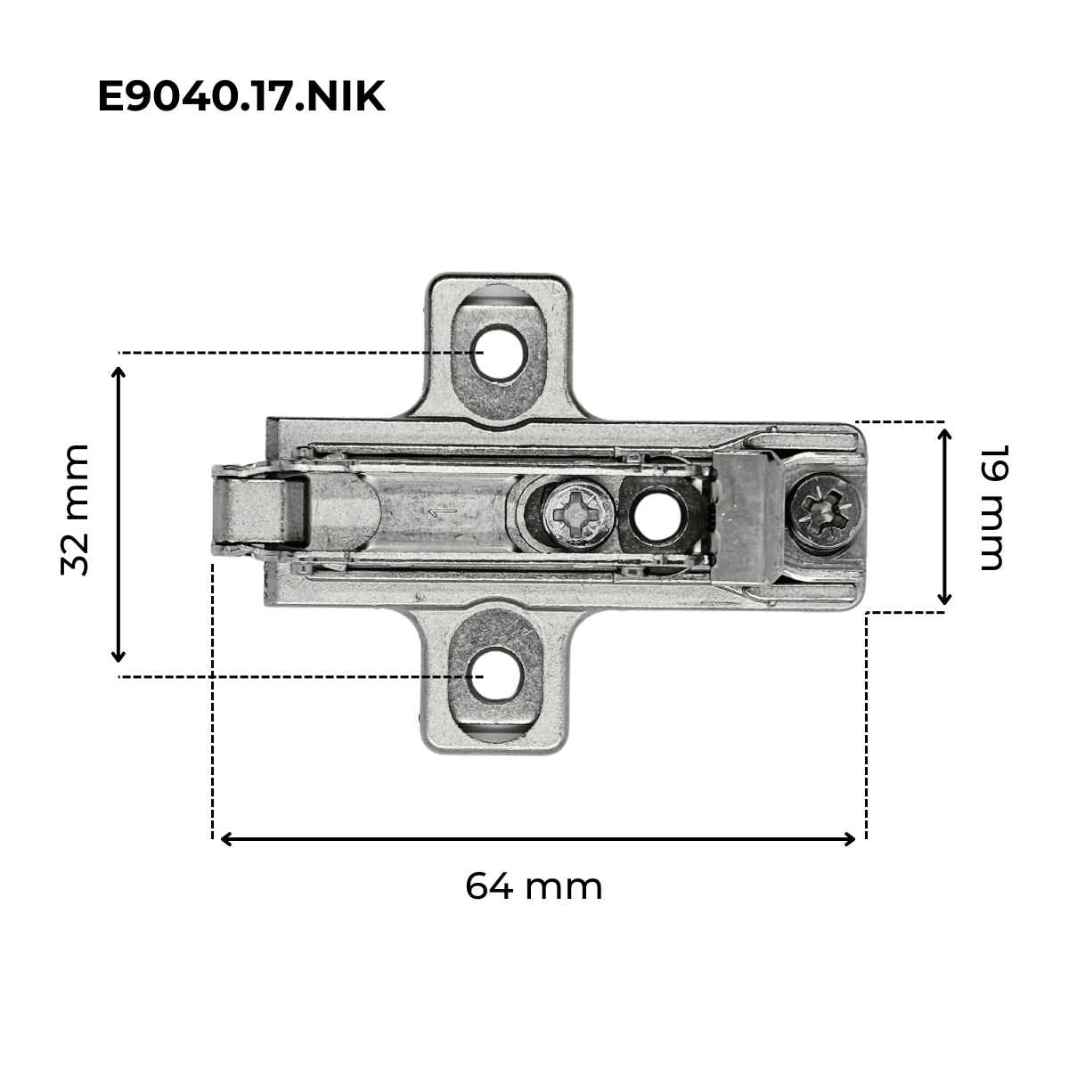La Base Domi-Clip Full Automatic Salice E9040.17.Nik de enganche rápido, que se utiliza para puertas de madera, Su mejor complemento es la bisagra E3407.17.Nik