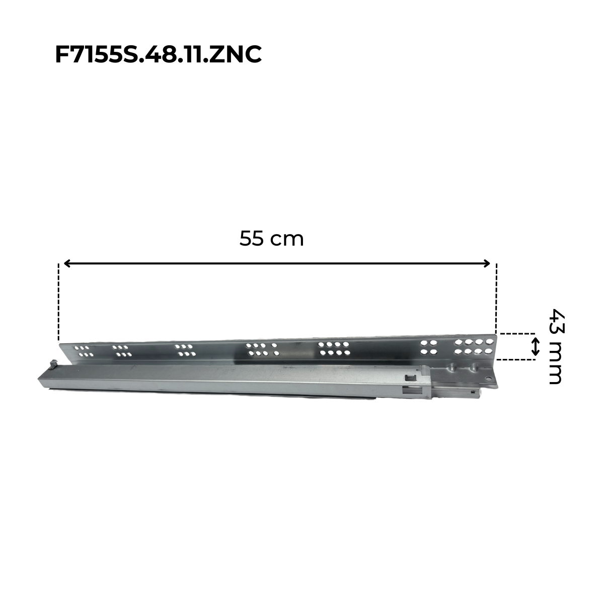 La Corredera Extraíble Completa Cierre Suave F7155S.48.11.Znc es una corredera innovadora donde todo el sistema va montado en el mueble, dejando los cajones limpios por abajo y sostenidos solo con 2 brackets. Ideal para cajones de clóset o cocina, este mecanismo oculto cuenta con un sistema de cierre suave que se acciona con un simple impulso de los dedos. Soporta hasta 30 kg y es perfecto para cajones de 35 cm a 55 cm de fondo, permitiendo que el cajón se deslice completamente hacia afuera sin esfuerzo.